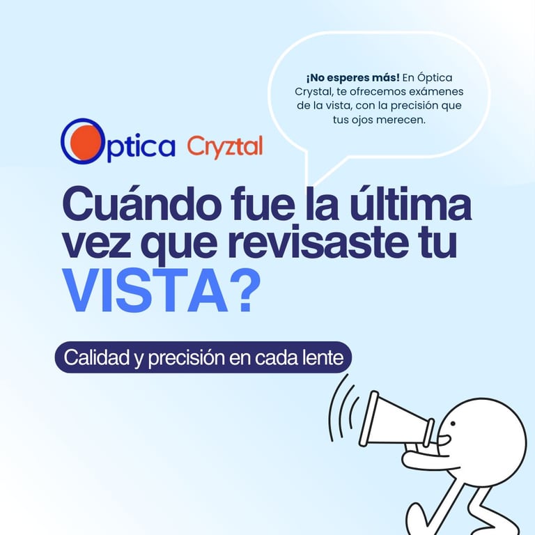 En Óptica Cryztal cuidamos tu vista con exámenes profesionales, lentes de calidad y armazones diseñados para tu estilo de vida.